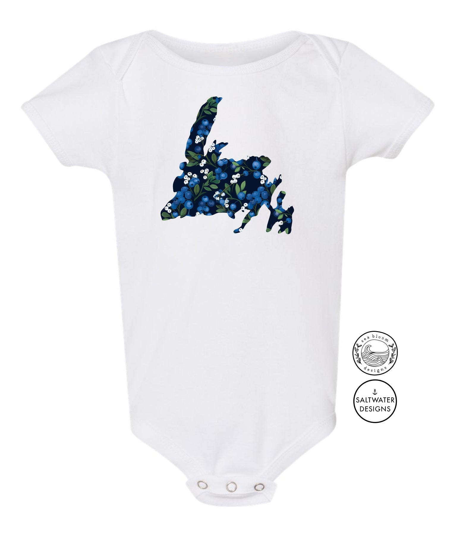 Sea Bloom Designs Blueberry Newfoundland Map Onesie